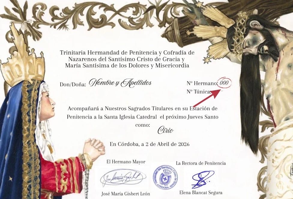 Sede canónica: Parroquia de Nuestra Señora de Gracia y San Eulogio (Padres Trinitarios). Plaza Cristo de Gracia 5, 14002 Córdoba